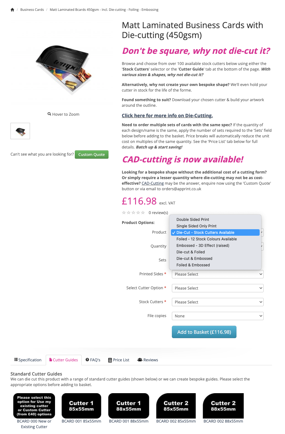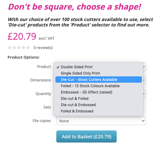 With our choice of over 100 stock cutters available to use, select 'Die-cut' products from the 'Product' selector to find out more.