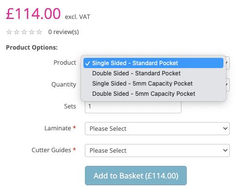 Use the 'Laminate' selector to choose between Matt or Gloss laminate as standard, or premium Soft-touch or Anti-scuff laminate for an extra cost.