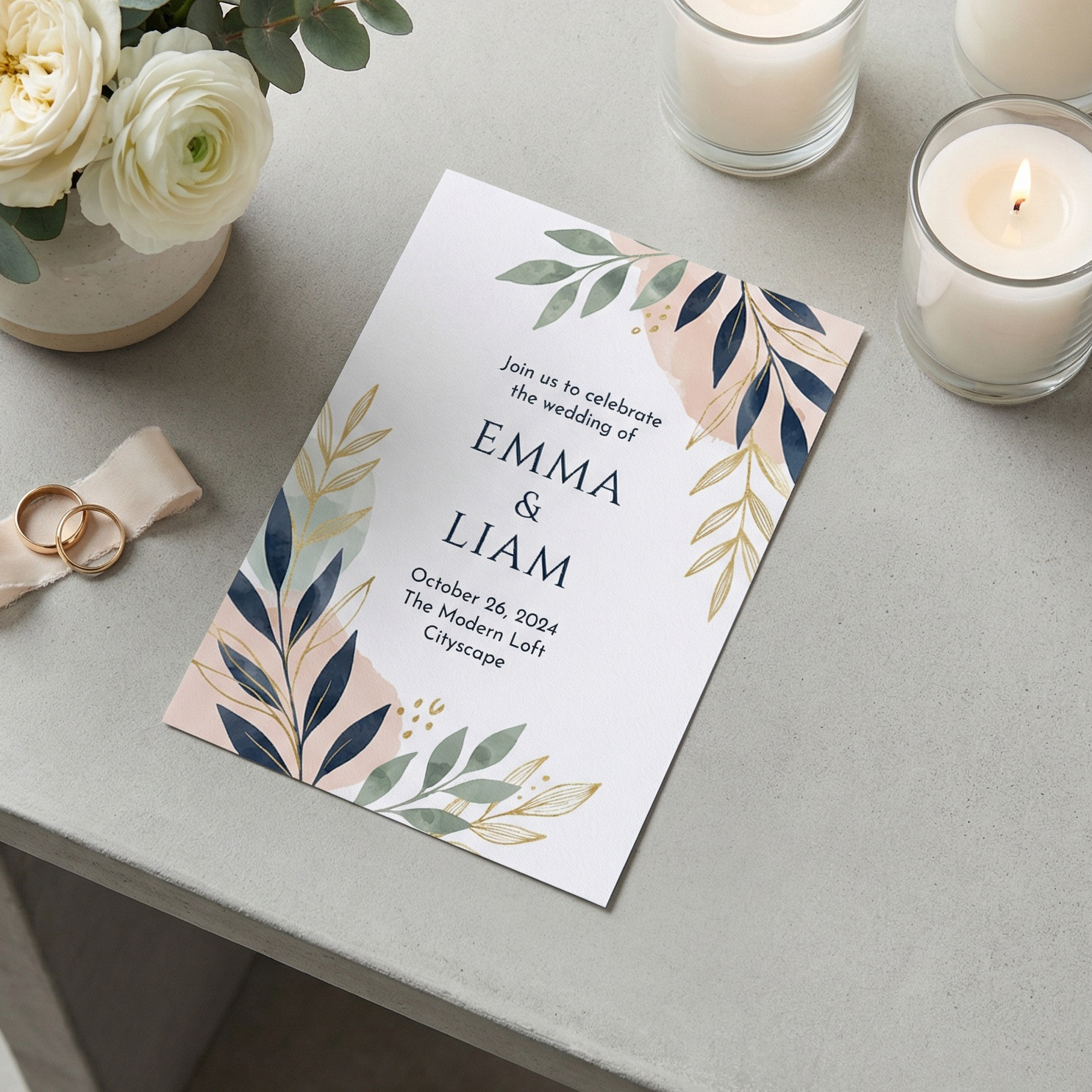 A6 (148x105mm) invitations printed CMYK on Tintoretto Gesso 300gsm. Supplied with guillotined square-cut edges and without envelopes as standard. Available with optional rounded corners and luxury white envelopes at an additional cost.